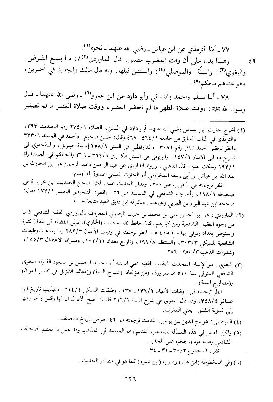 انظر ترجمته في: وفيات الأعيان 2/ 136 - 137، وطبقات السبكي 4/ 214. وتهذيب تاريخ ابن عساكر 4/ 348. وقد قال البعوي شرح السنة 2/ 216 قلت. أصح الأقوال أن لها وقتين وآخر وقتها إلى غيبوبة الشفق. يعني المغرب.