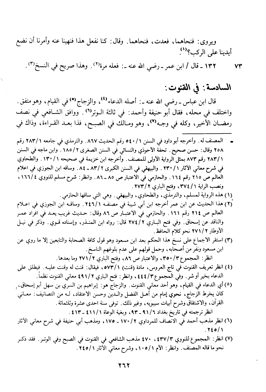 (¬7) انظر: المجموع للنووي 3/ 437، 470 مذهب الشافعي في القنوت في الصبح وفي الوتر. فقد ذكر نحو ما قاله المصنف. وانظر: الأم 1/ 105، وشرح معاني الآثار 1/ 245.
