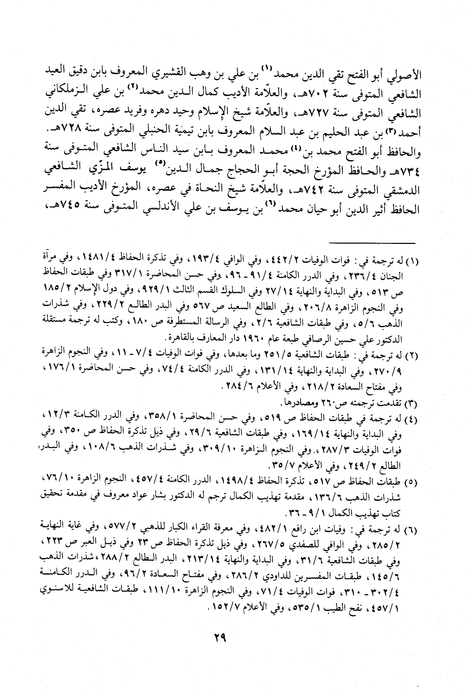 (¬1) له ترجمة في: ذوات الوفيات 2/ 442، وفي الوافي 4/ 193، وفي تذكرة الحفاظ 4/ 1481، وفي مرآة الجنان 4/ 236، وفي الدرر الكامنة 4/ 91 - 96، وفي حسن المحاضرة 1/ 317 وفي طبقات الحفاظ ص 513، وفي البداية والنهاية 14/ 27 وفي السلوك القسم الثالث 1/ 929، وفي دول الإِسلام 2/ 185 وفي النجوم الزاهرة 8/ 206، وفي الطالع السعيد ص 567 وفي البدر الطالع 2/ 229، وفي شذرات الذهب 6/ 5، وفي طبقات الشافعية 6/ 2، وفي الرسالة المستطرفة ص 180، وكتب له ترجمة مستقلة الدكتور علي حسين الرصافي طبعة عام 1960 دار المعارف بالقاهرة.