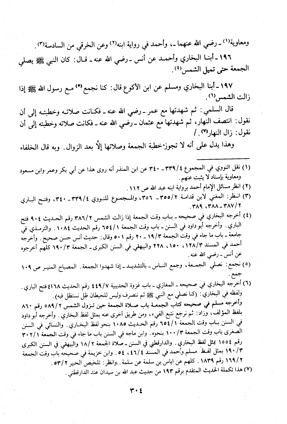 196 - أبنا البخاري وأحمد عن أنس -رضي الله عنه - قال: كان النبي - صلى الله عليه وسلم - يصلي الجمعة حتى تميل الشمس (¬4).