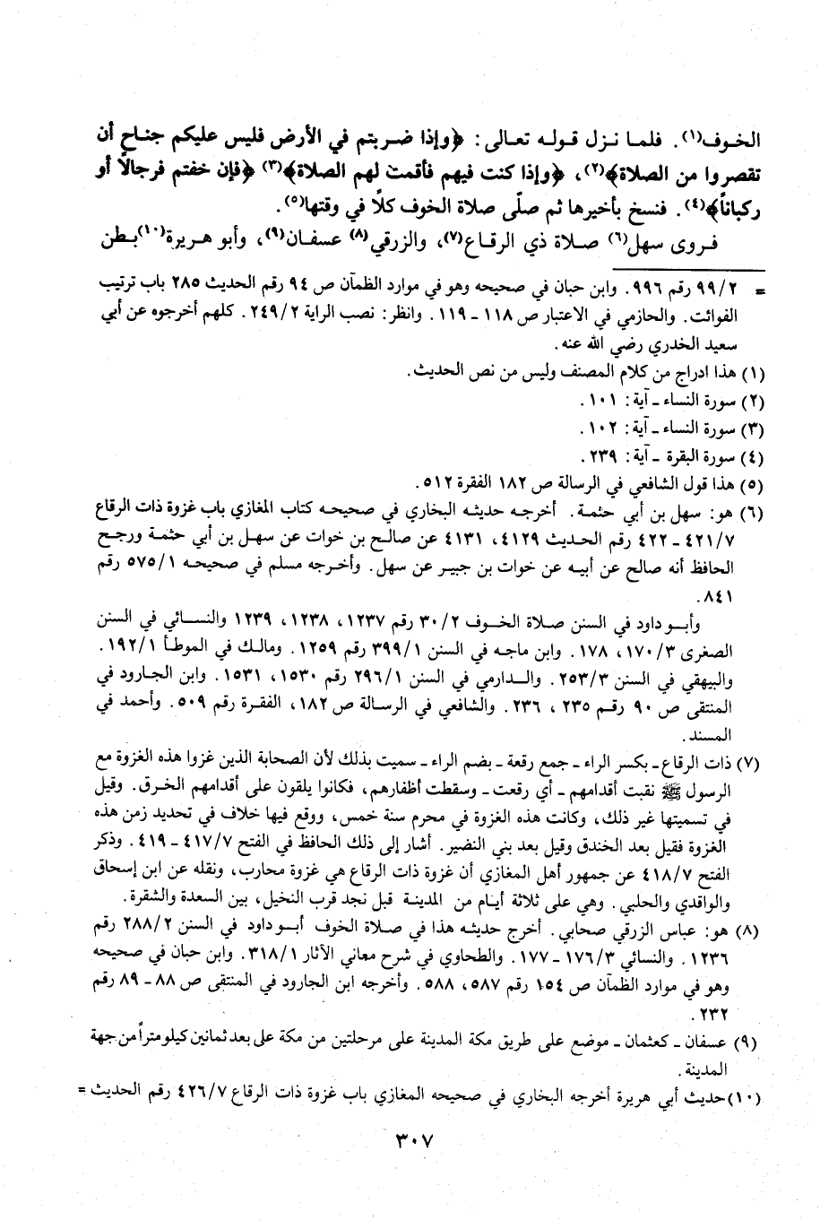 وأبو داود في السنن صلاة الخوف 2/ 30 رقم 1237، 1238، 1239 والنسائي في السنن الصغرى 3/ 170، 178. وابن ماجه في السنن 1/ 399 رقم 1259. ومالك في الموطأ 1/ 192. والبيهقي في السنن 3/ 253. والدارمي في السنن 1/ 296 رقم 1530، 1531. وابن الجارود في المنتقى ص 90 رقم 235، 236. والشافعي في الرسالة ص 182، الفقرة رقم 509. وأحمد في المسند.