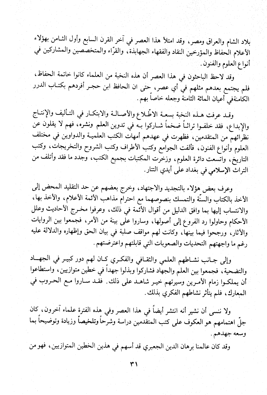 بلاد الشام والعراق ومصر، وقد امتلأ هذا العصر في آخر القرن السابع وأول الثامن بهؤلاء الأعلام الحفاظ والمؤرخين النقاد والفقهاء الجهابذة، والقرّاء والمتخصصين والمشاركين في أنواع العلوم والفنون.