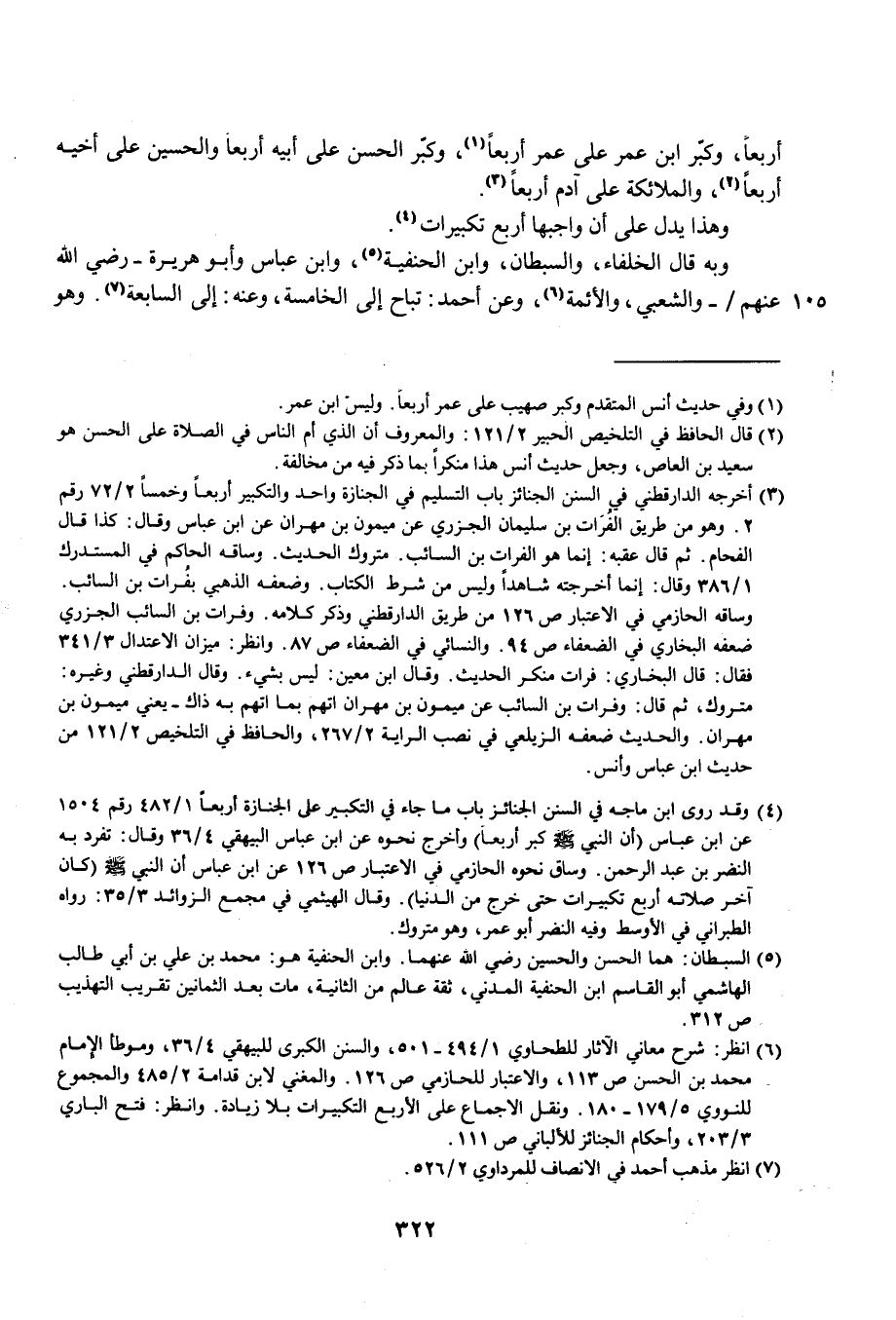 (¬6) انظر: شرح معاني الآثار للطحاوي 1/ 494 - 501، والسنن الكبرى للبيهقي 4/ 36، وموطأ الإِمام محمَّد بن الحسن ص 113، والاعتبار للحازمي ص 126. والمغني لابن قدامة 2/ 485 والمجموع للنووي 5/ 179 - 180. ونقل الإجماع على الأربع التكبيرات بلا زيادة. وانظر: فتح الباري 3/ 203، وأحكام الجنائز للألباني ص 111.