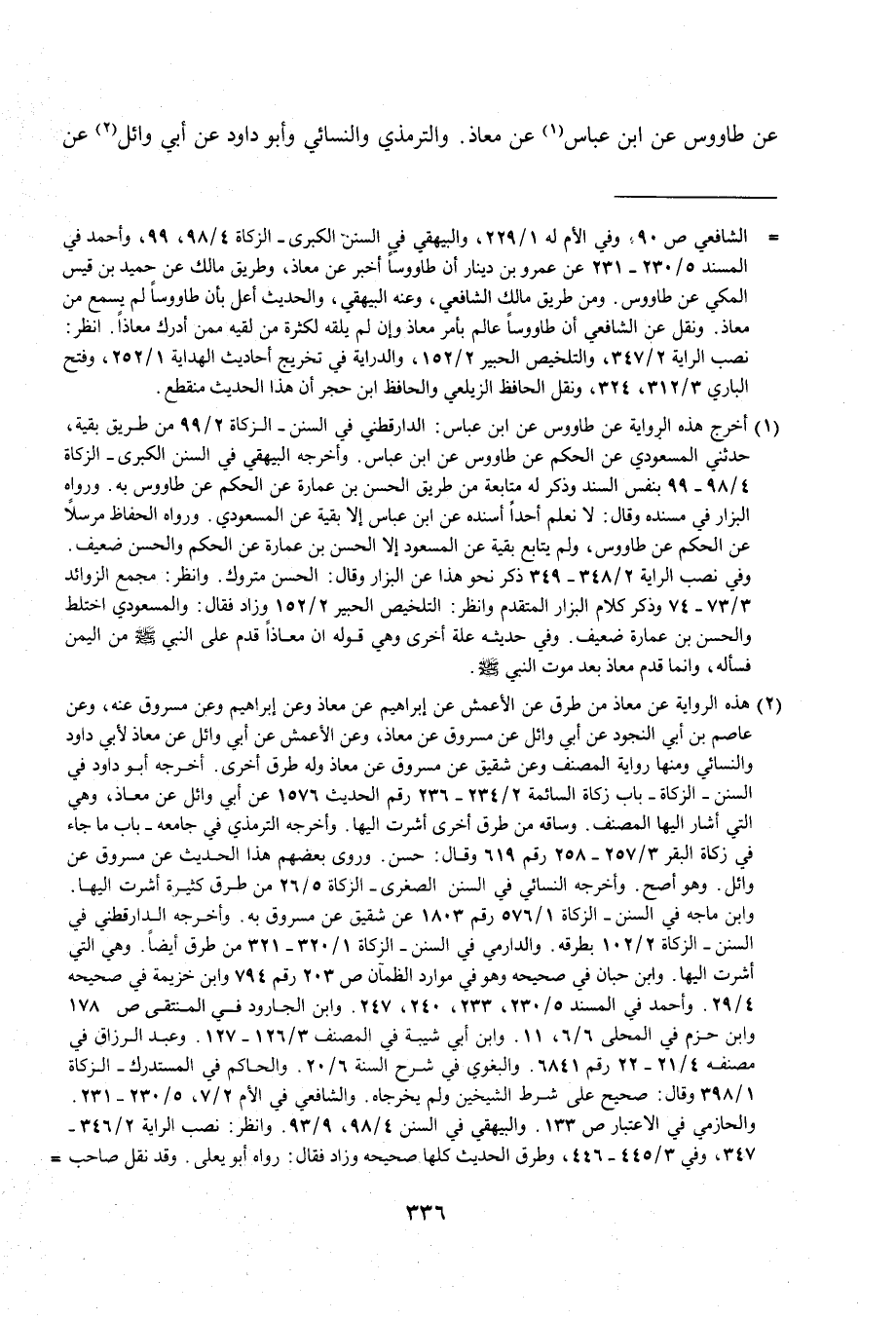 (¬1) أخرج هذه الرواية عن طاووس عن ابن عباس: الدارقطني في السنن- الزكاة 2/ 99 من طريق بقية، حدثني المسعودي عن الحكم عن طاووس عن ابن عباس. وأخرجه البيهقي في السنن الكبرى - الزكاة 4/ 98 - 99 بنفس السند وذكر له متابعة من طريق الحسن بن عمارة عن الحكم عن طاووس به. ورواه البزار في مسنده وقال: لا نعلم أحدًا أسنده عن ابن عباس إلا بقية عن المسعودي. ورواه الحفاظ مرسلًا عن الحكم عن طاووس، ولم يتابع بقية عن المسعود إلا الحسن بن عمارة عن الحكم والحسن ضعيف. وفي نصب الراية 2/ 348 - 349 ذكر نحو هذا عن البزار وقال: الحسن متروك. وانظر: مجمع الزوائد 3/ 73 - 74 وذكر كلام البزار المتقدم وانظر: التلخيص الحبير 2/ 152 وزاد فقال: والمسعودي اختلط والحسن بن عمارة ضعيف. وفي حديثه علة أخرى وهي قوله أن معاذًا قدم على النبي - صلى الله عليه وسلم - من اليمن فسأله, وإنما قدم معاذ بعد موت النبي - صلى الله عليه وسلم -.