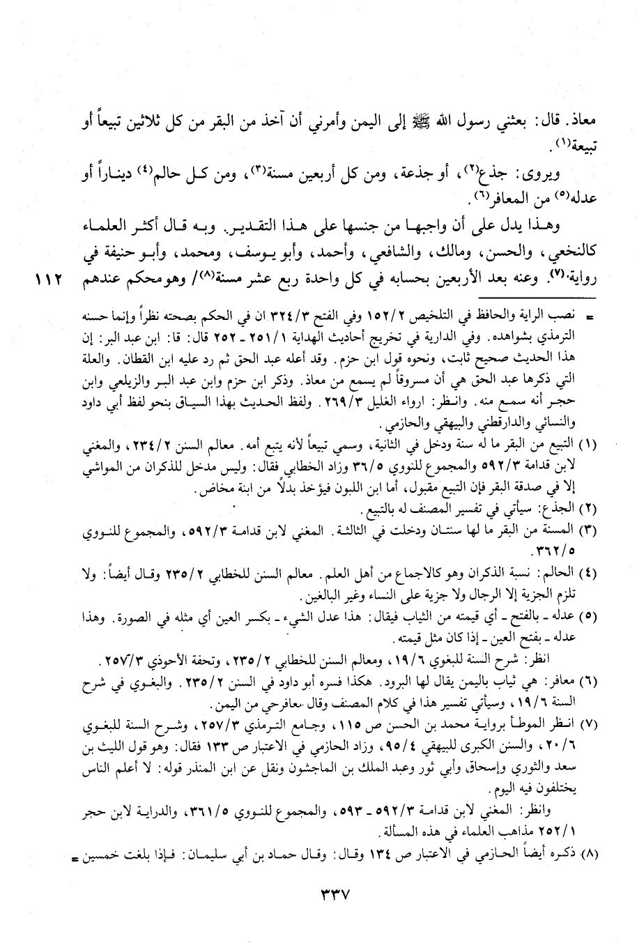 معاذ. قال: بعثني رسول الله - صلى الله عليه وسلم - إلى اليمن وأمرني أن آخذ من البقر من كل ثلاثين تبيعًا أو تبيعة (¬1).