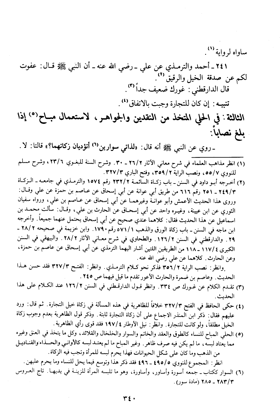 241 - أحمد والترمذي عن علي -رضي الله عنه - أن النبي - صلى الله عليه وسلم - قال: عفوت لكم عن صدقة الخيل والرقيق (¬2).