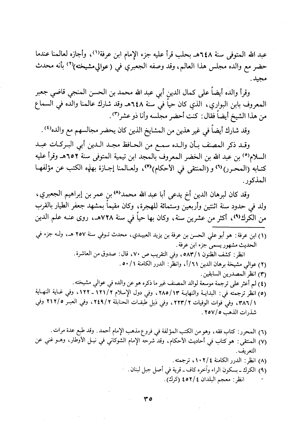 (¬6) المحرر: كتاب فقه، وهو من الكتب المؤلفة في فروع مذهب الإِمام أحمد. وقد طبع عدة مرات.