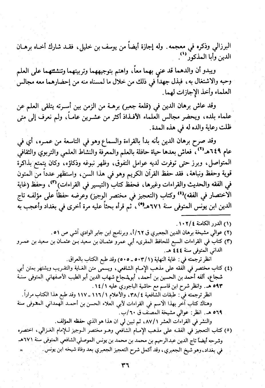 (¬5) كتاب التعجيز في الفقه على مذهب الإِمام الشافعي وهو مختصر الوجيز للإِمام الغزالي، اختصره وشرحه أيضًا تاج الدين عبد الرحيم بن محمَّد بن محمَّد بن يونس الموصلي الشافعي المتوفى سنة 671 هـ في بغداد، وهو شيخ الجعبري، وقد أكمل شرح التعجيز الجعبري بعد وفاة شيخه ابن يونس. =