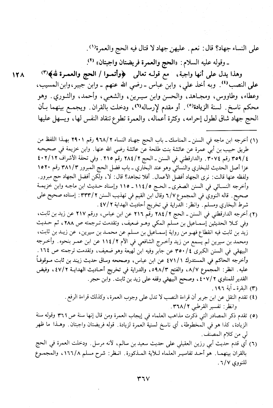 (¬5) تقدم ذكر المصادر التي ذكرت مذاهب العلماء في إيجاب العمرة ومن قال إنها سنة ص 361 وقوله سنة الزيادة، كذا هو في المخطوطة، أي ناسخ لسنية العمرة لزيادة. قوله فريضتان واجبتان. وهذا ما ظهر لي من كلام المصنف.