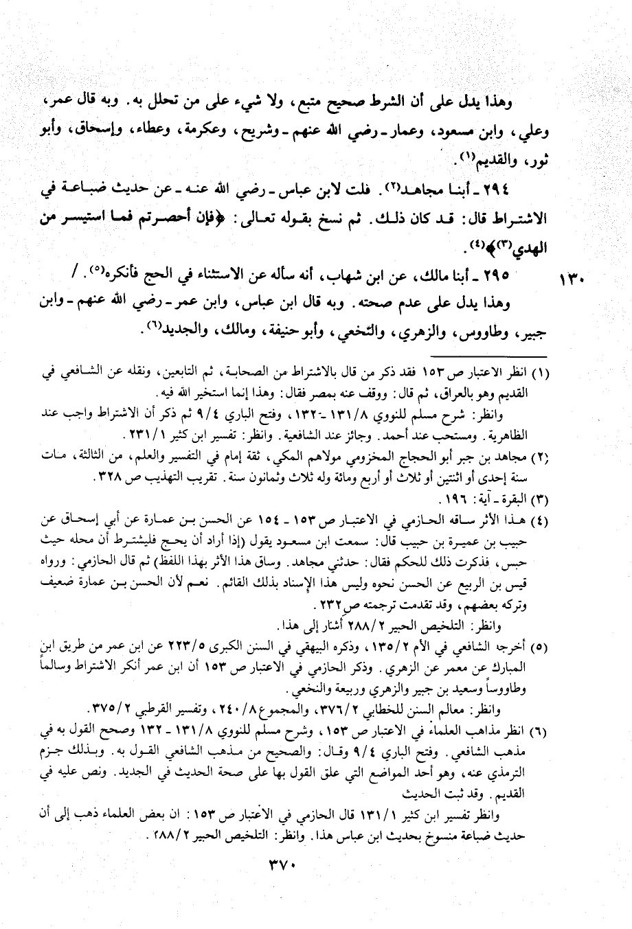 (¬1) انظر الاعتبار ص 153 فقد ذكر من قال بالاشتراط من الصحابة، ثم التابعين، ونقله عن الشافعي في القديم وهو بالعراق، ثم قال: ووقف عنه بمصر فقال: وهذا إنما استخير الله فيه.