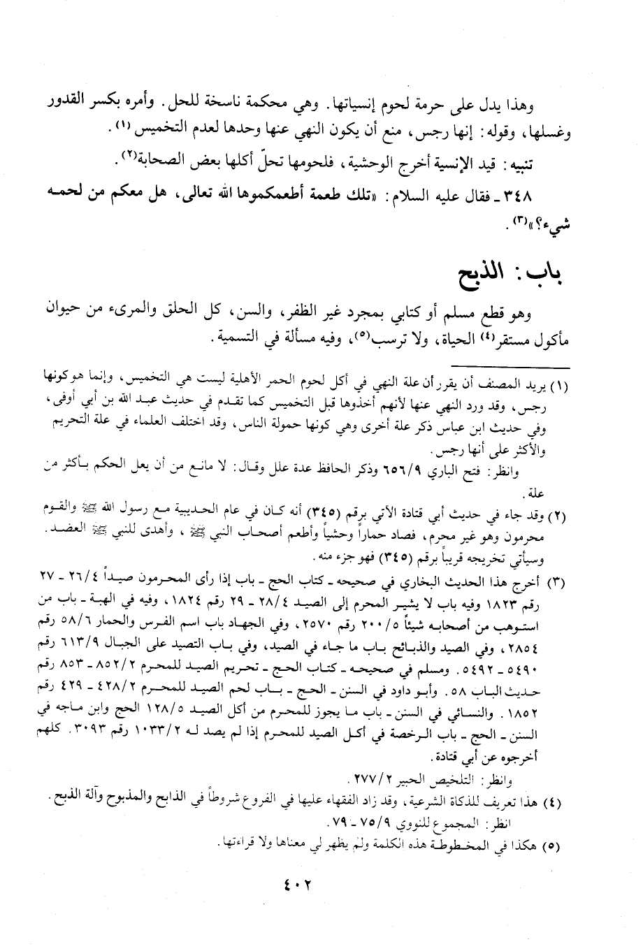 (¬4) هذا تعريف للذكاة الشرعية، وقد زاد الفقهاء عليها في الفروع شروطًا في الذبح والمذبوح وآلة الذبح.