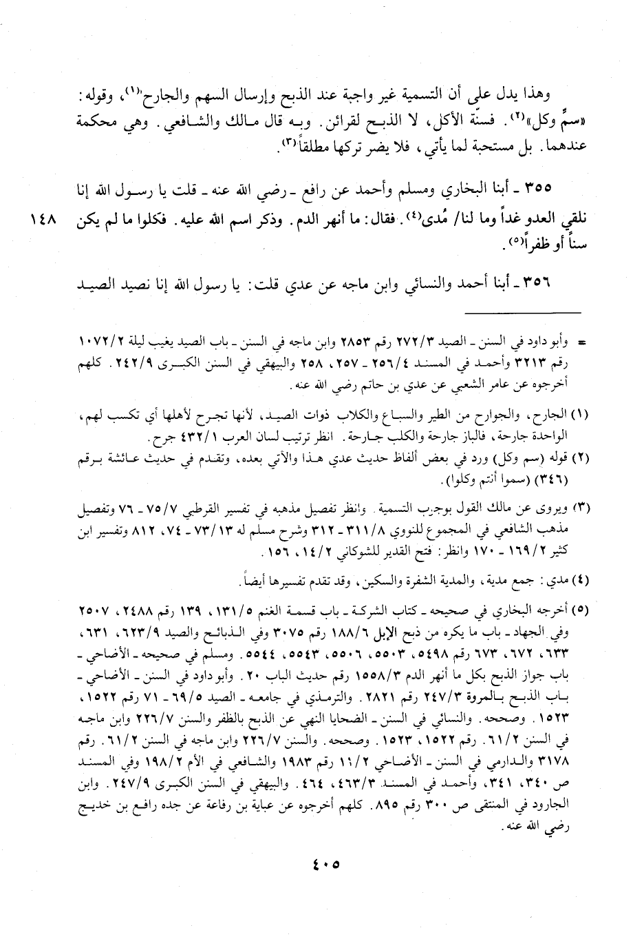 356 - أبنا أحمد والنسائي وابن ماجه عن عدي قلت: يا رسول الله إنا نصيد الصيد