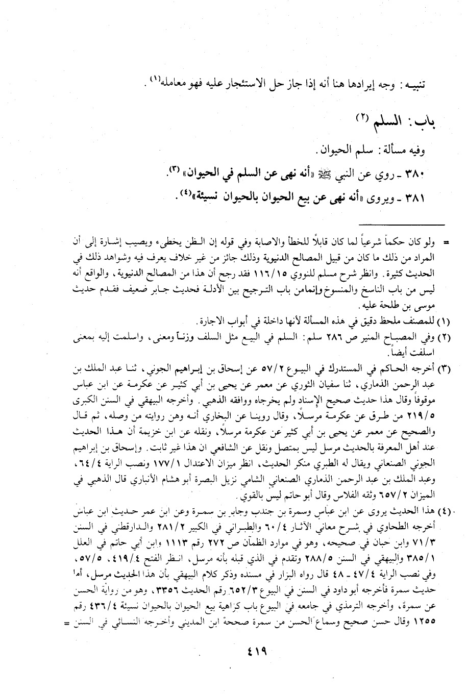380 - روي عن النبي - صلى الله عليه وسلم - "أنه نهى عن السلم في الحيوان" (¬3).