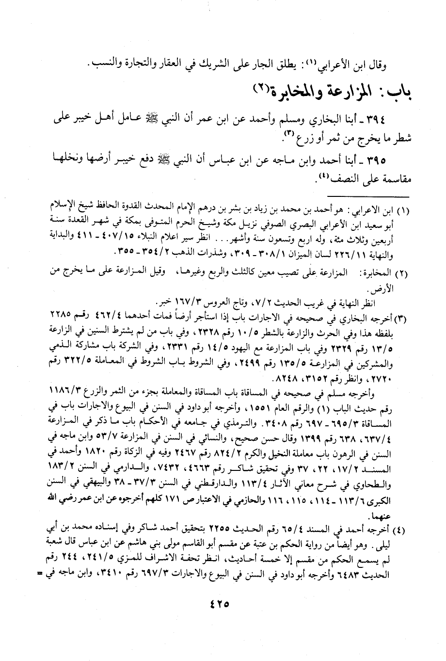 394 - أبنا البخاري ومسلم وأحمد عن ابن عمر أن النبي - صلى الله عليه وسلم - عامل أهل خيبر على شطر ما يخرج من ثمر أو زرع (¬3).