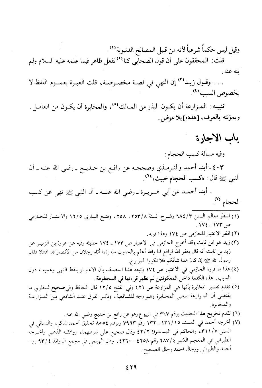 (¬3) زيد هو ابن ثابت وقد أخرج الحازمي في الاعتبار ص 173 - 174 حديثه وفيه عن عروة بن الزبير عن زيد بن ثابت أنه قال يغفر الله لرافع أنا والله أعلم بالحديث منه إنما أتاه رجلان من الأنصار قد اقتتلا فقال رسول الله - صلى الله عليه وسلم - إن كان هذا شأنكم فلا تكروا المزارع.