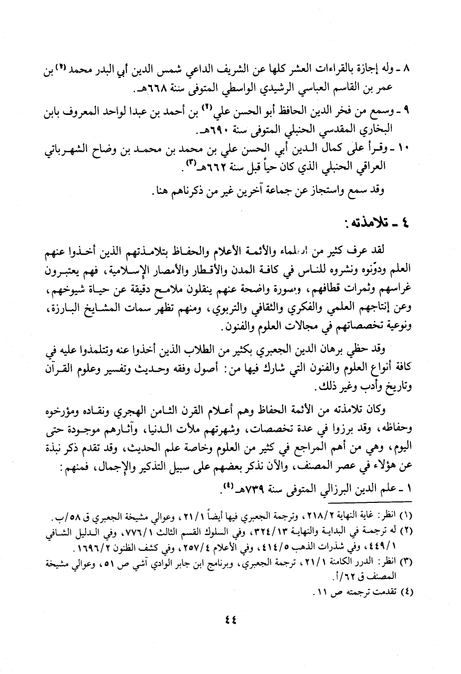 (¬1) انظر: غاية النهاية 2/ 218، وترجمة الجعبري فيها أيضًا 1/ 21، وعوالي مشيخة الجعبري ق 58/ ب.