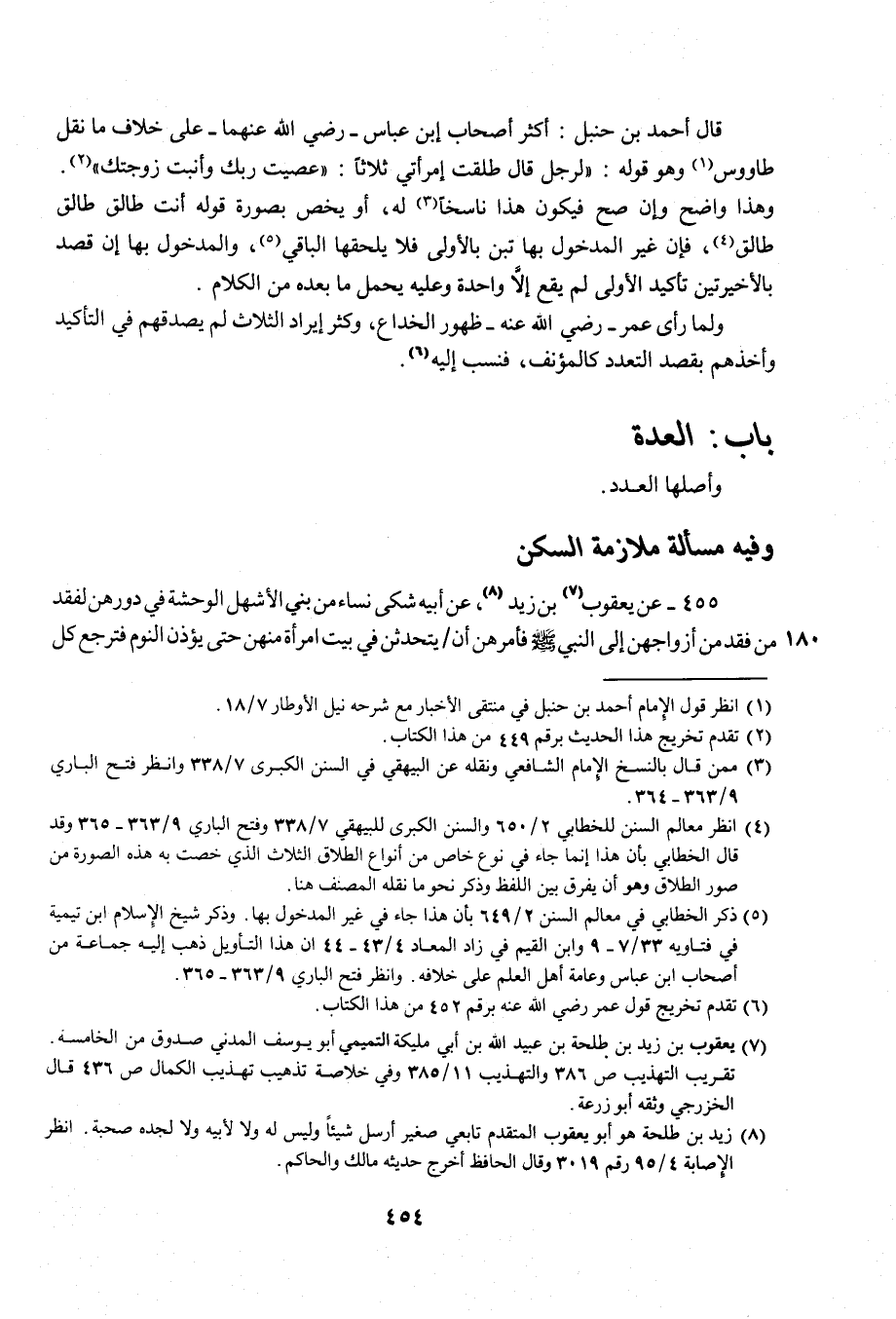 (¬5) ذكر الخطابي في معالم السنن 2/ 649 بأن هذا جاء في غير المدخول بها. وذكر شيخ الإِسلام ابن تيمية في فتاويه 33/ 7 - 9 وابن القيم في زاد المعاد 4/ 43 - 44 إن هذا التأويل ذهب إليه جماعة من أصحاب ابن عباس وعامة أهل العلم على خلافه. وانظر فتح الباري 9/ 363 - 365.