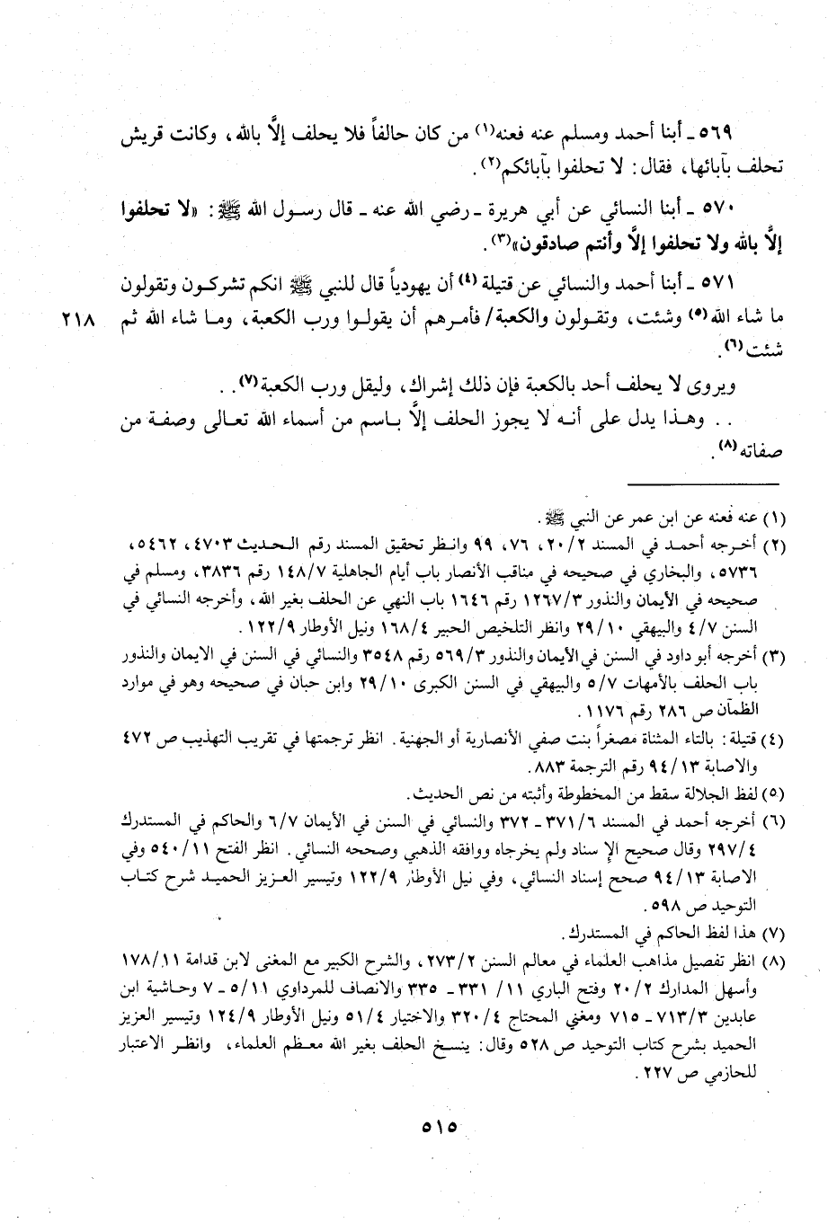 (¬8) انظر تفصيل مذاهب العلماء في معالم السنن 2/ 273، والشرح الكبير مع المغنى لابن قدامة 11/ 178 وأسهل المدارك 2/ 20 وفتح الباري 11/ 331 - 335 والإنصاف للمرداوي 11/ 5 - 7 وحاشية ابن عابدين 3/ 713 - 715 ومغني المحتاج 4/ 320 والاختيار 4/ 51 ونيل الأوطار 9/ 124 وتيسير العزيز الحميد بشرح كتاب التوحيد ص 528 وقال: ينسخ الحلف بغير الله معظم العلماء، وانظر الاعتبار للحازمي ص 227.