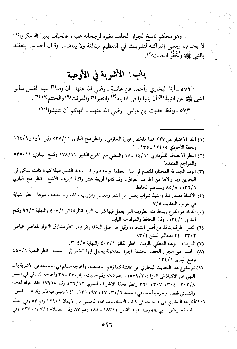 572 - أبنا البخاري وأحمد عن عائشة -رضي الله عنها- أن وفد (¬3) عبد القيس سألوا النبي - صلى الله عليه وسلم - عن النبيذ (¬4) أن ينتبذوا في الدباء (¬5) والنقير (¬6) والمزفت (¬7) والحنتم (¬8) (¬9).