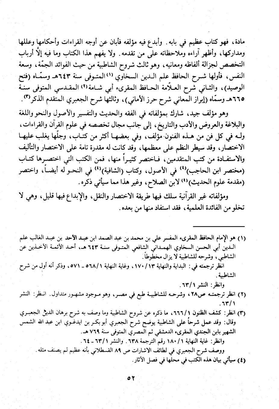 (¬2) انظر ترجمته ص 28، وشرحه للشاطبية طبع في مصر، وهو موجود مشهور متداول. انظر: النشر 1/ 63.