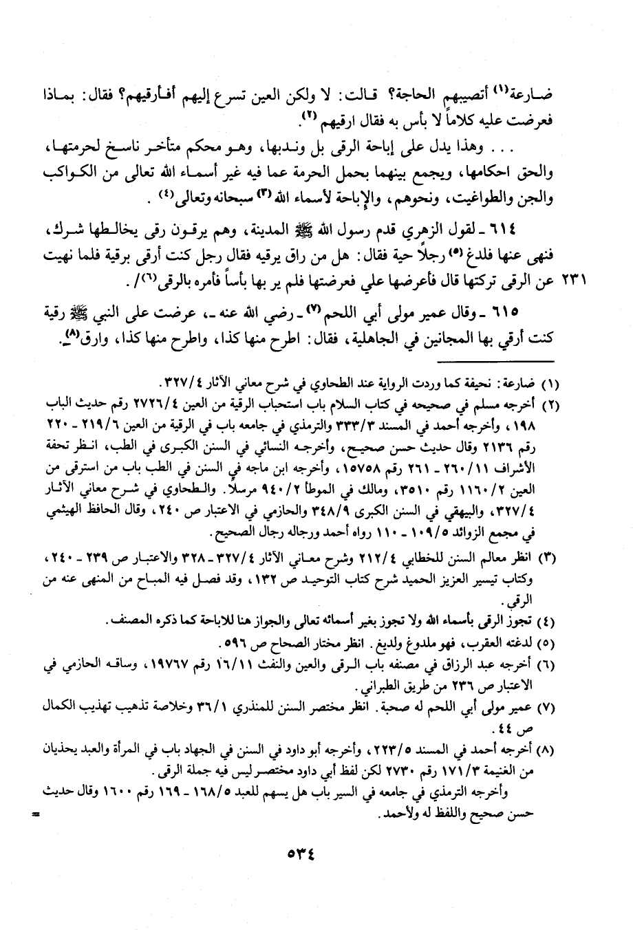 (¬3) انظر معالم السنن للخطابي 4/ 212 وشرح معاني الآثار 4/ 327 - 328 والاعتبار ص 239 - 240، وكتاب تيسير العزيز الحميد شرح كتاب التوحيد ص 132، وقد فصل فيه المباح من المنهى عنه من الرقي.