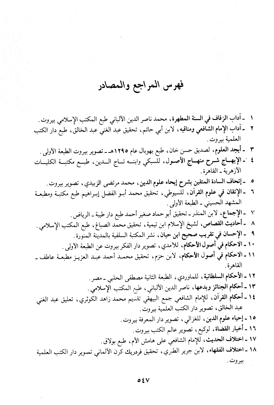 2 - آداب الإِمام الشافعي ومناقبه، لابن أبي حاتم، تحقيق عبد الغني عبد الخالق، طبع دار الكتب العلمية بيروت.