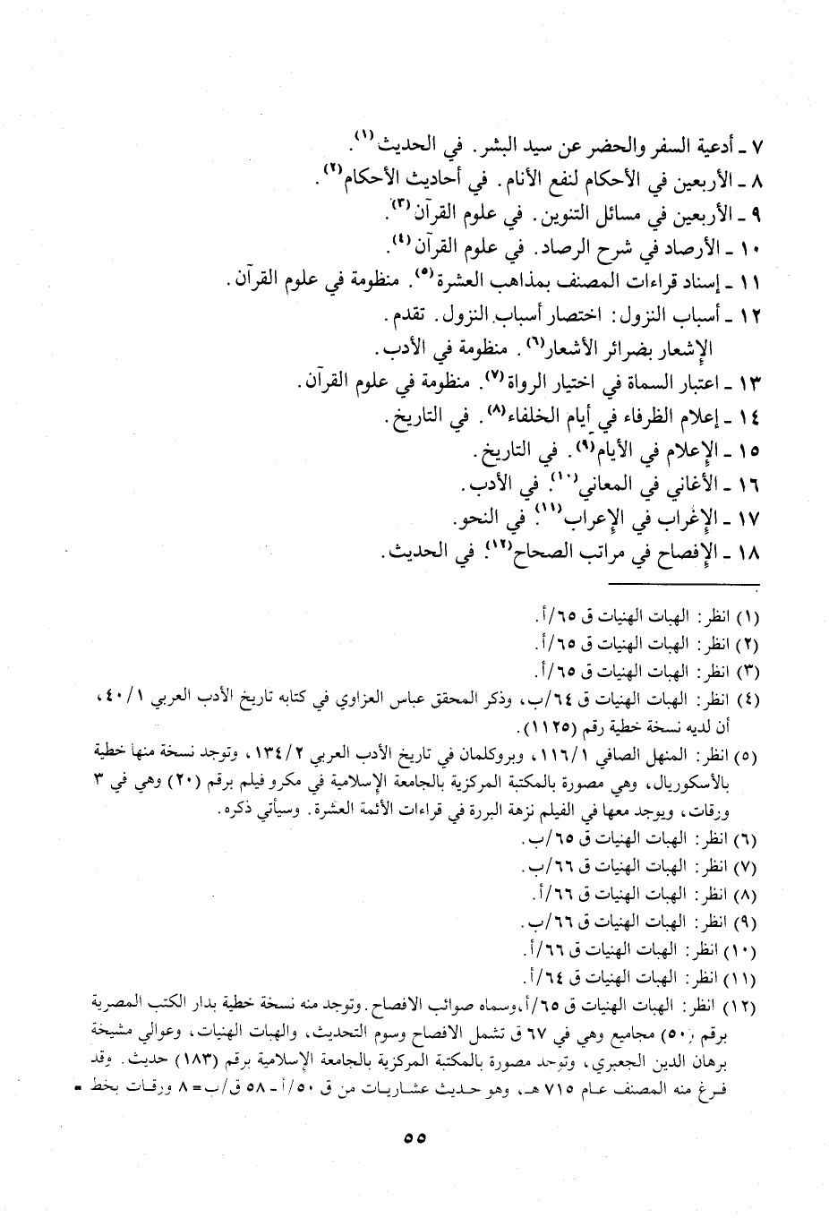 (¬12) انظر: الهبات الهنيات ق 65/ أ، وسماه صوائب الإفصاح. وتوجد منه نسخة خطية بدار الكتب المصرية برقم (50) مجاميع وهي في 67 ق تشمل الإفصاح وسوم التحديت، والهبات الهنيات، وعوالي مشيخة برهان الدين الجعبري، وتوجد مصورة بالمكتبة المركزية بالجامعة الإسلامية برقم (183) حديث. وقد فرغ منه المصنف عام 715 هـ، وهو حديث عشاريات من ق 50/ أ - 58 ق/ ب = 58 ورقات بخط =