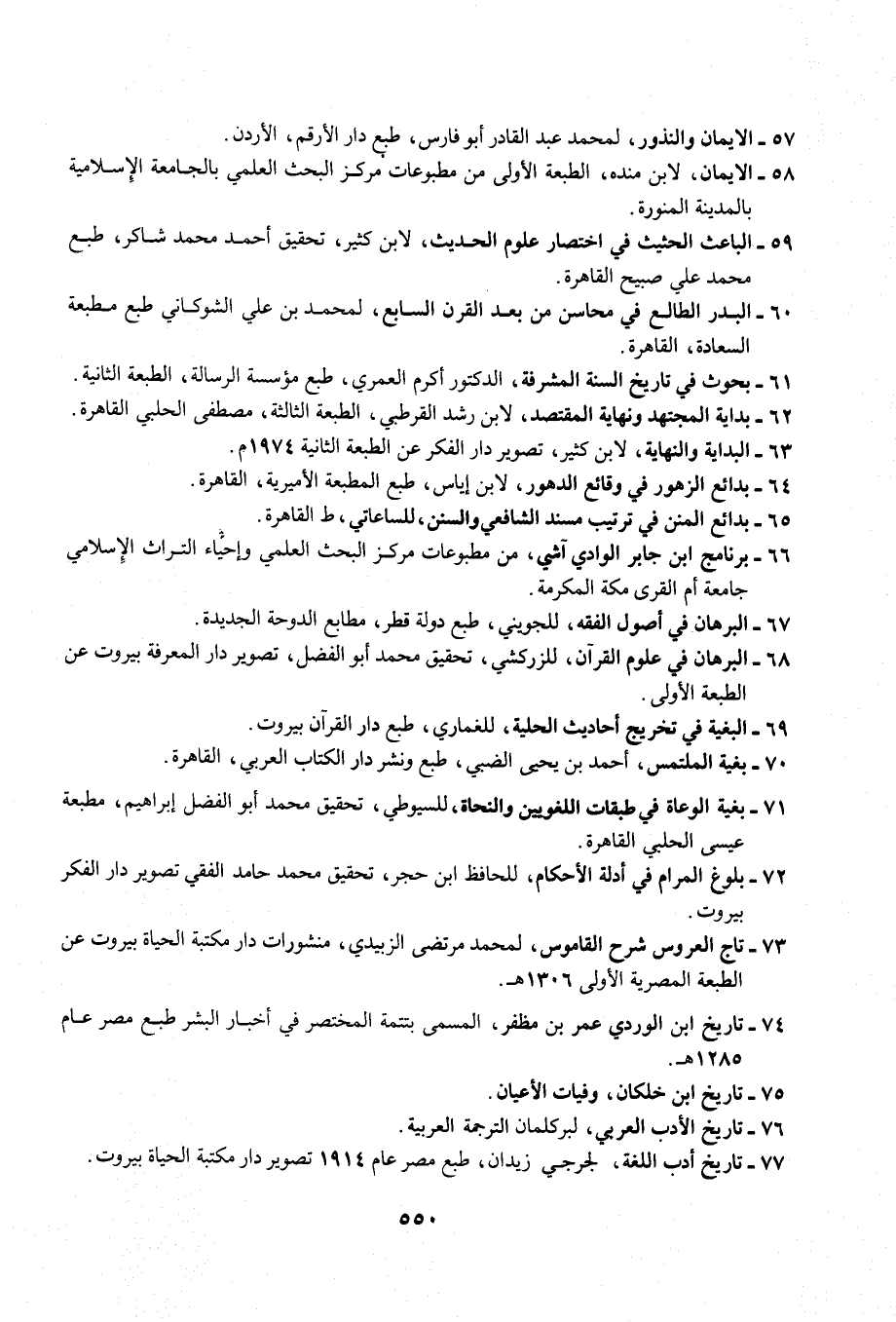 72 - بلوغ المرام في أدلة الأحكام، للحافظ ابن حجر، تحقيق محمد حامد الفقي تصوير دار الفكر بيروت.