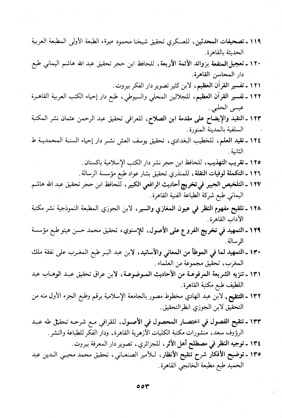 135 - توضيح الأفكار شرح تنقيح الأنظار، للأمير الصنعاني، تحقيق محمد محيي الدين عبد الحميد طبع مطبعة الخانجي القاهرة.