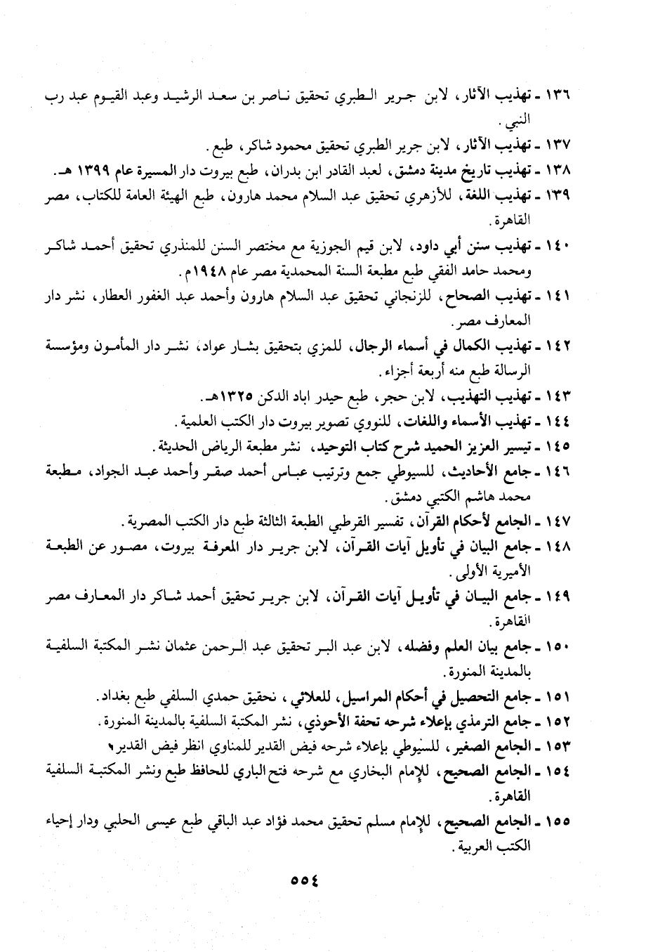 140 - تهذيب سنن أبي داود، لابن قيم الجوزية مع مختصر السنن للمنذري تحقيق أحمد شاكر ومحمد حامد الفقي طبع مطبعة السنة المحمدية مصر عام 1948 م.