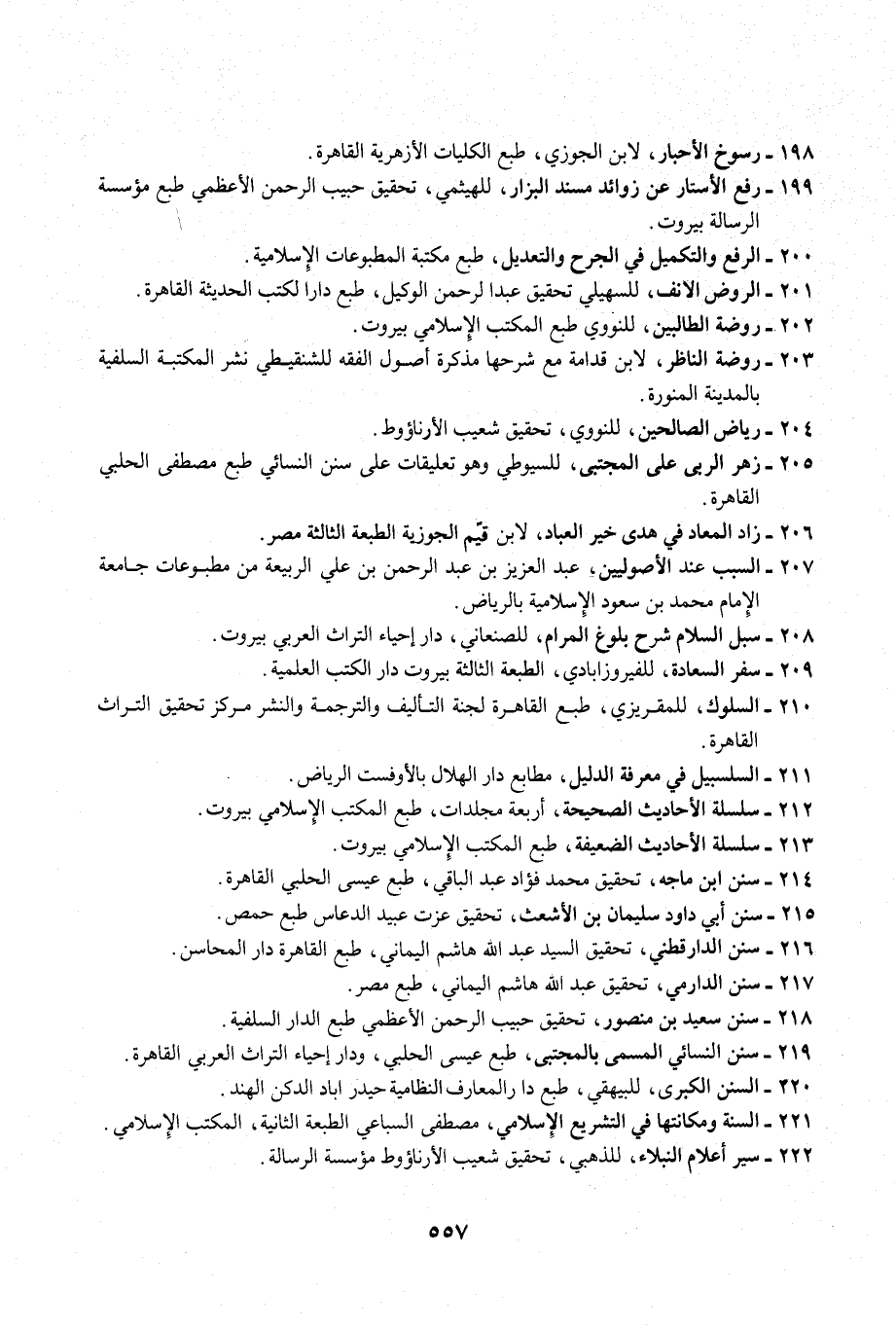 205 - زهر الربى على المجتبى، للسيوطي وهو تعليقات على سنن النسائي طبع مصطفى الحلبي القاهرة.