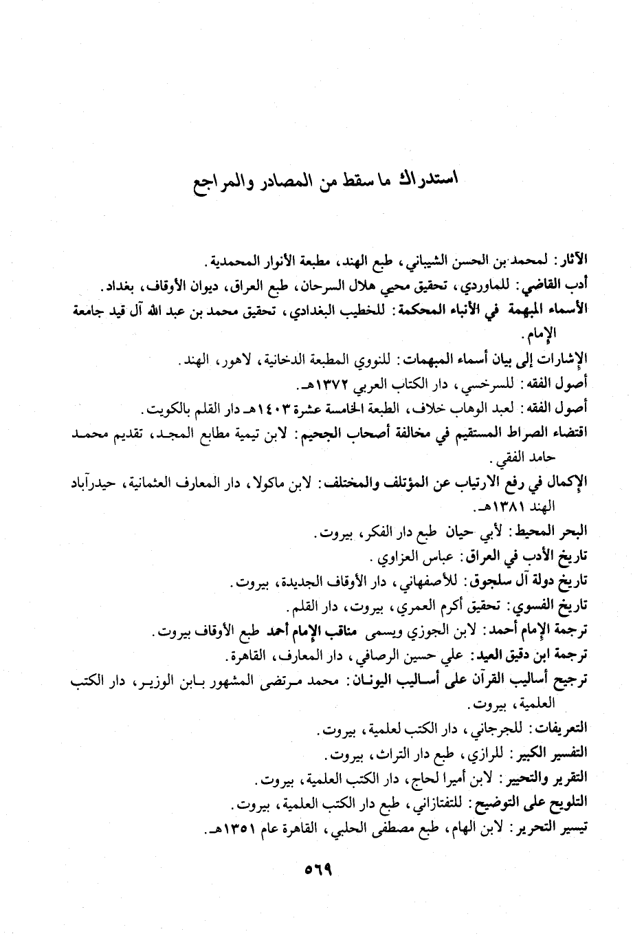 اقتضاء الصراط المستقيم في مخالفة أصحاب الجحيم: لابن تيمية مطابع المجد، تقديم محمد حامد الفقي.