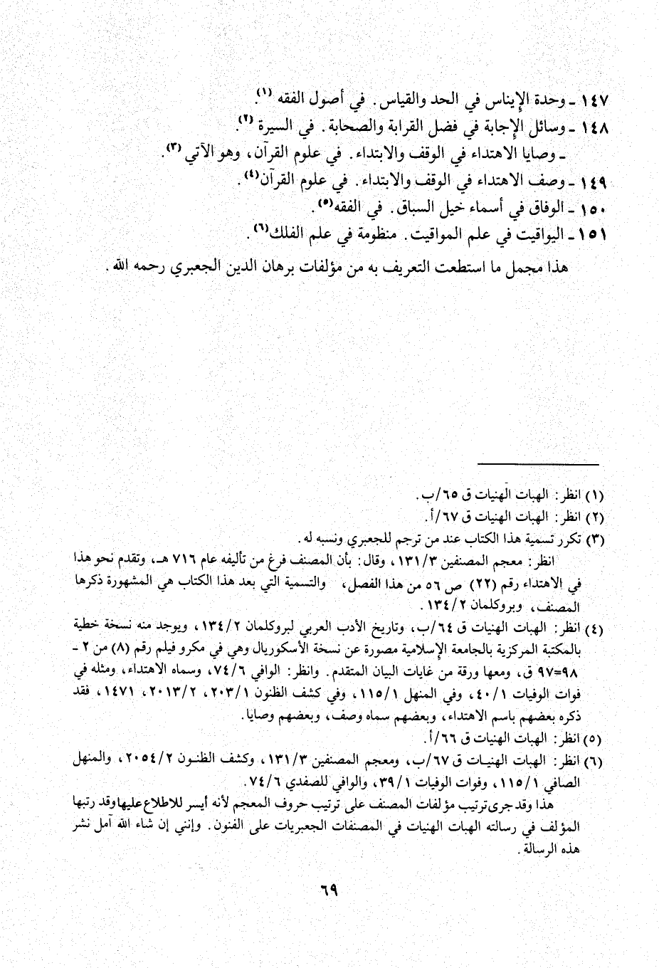 (¬6) انظر: الهبات الهنيات ق 67/ ب، ومعجم المصنفين 3/ 131، وكشف الظنون 2/ 2054، والمنهل الصافي 1/ 115، وفوات الوفيات 1/ 39، والواقي للصفدي 6/ 74.