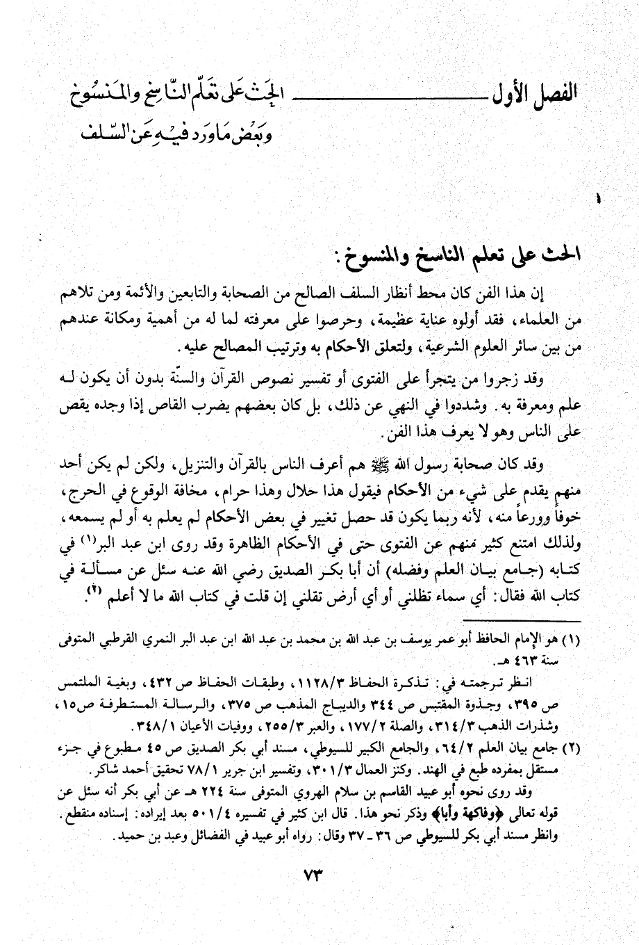 الفصل الأول الحَث عَلى تعَلّم النّاسِخ والمَنسُوخ وبَعض مَا ورَد فيهِ عِن السّلف