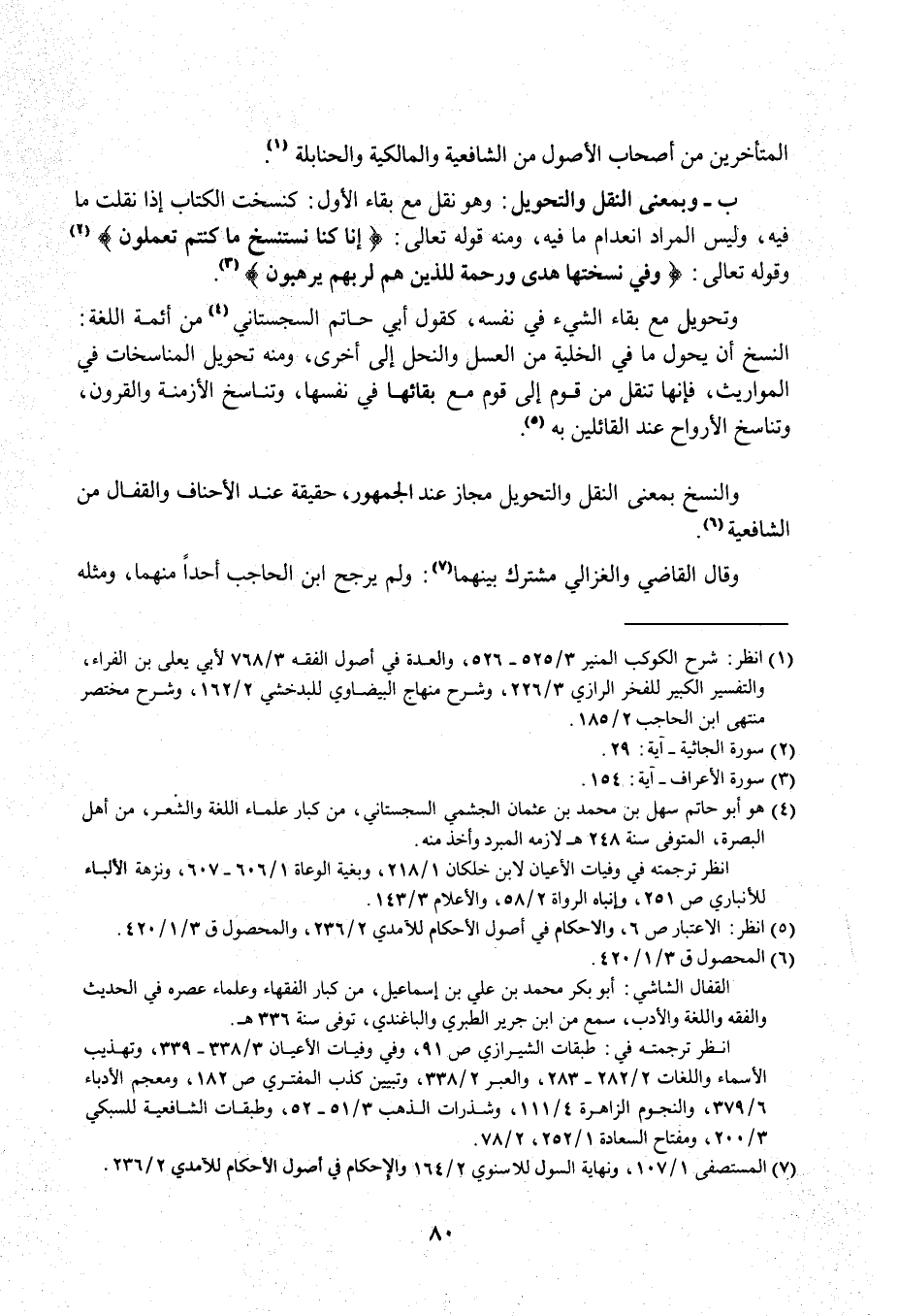 ب- وبمعنى النقل والتحويل: وهو نقل مع بقاء الأول: كنسخت الكتاب إذا نقلت ما فيه، وليس المراد انعدام ما فيه، ومنه قوله تعالى: {إِنَّا كُنَّا نَسْتَنْسِخُ مَا كُنْتُمْ تَعْمَلُونَ} (¬2) وقوله تعالى: {وَفِي نُسْخَتِهَا هُدًى وَرَحْمَةٌ لِلَّذِينَ هُمْ لِرَبِّهِمْ يَرْهَبُونَ} (¬3).