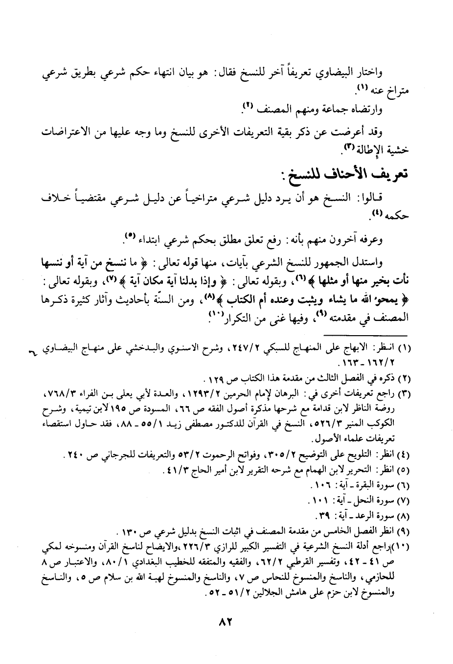 (¬10) راجع أدلة النسخ الشرعية في التفسير الكبير للرازي 3/ 226، والإيضاح لناسخ القرآن ومنسوخه لمكي ص 41 - 42، وتفسير القرطبي 2/ 62، والفقيه والمتفقه للخطيب البغدادي 1/ 80، والاعتبار ص 8 للحازمي، والناسخ والمنسوخ للنحاس ص 7، والناسخ والمنسوخ لهبة الله بن سلام ص 5، والناسخ والمنسوخ لابن حزم على هامش الجلالين 2/ 51 - 52.