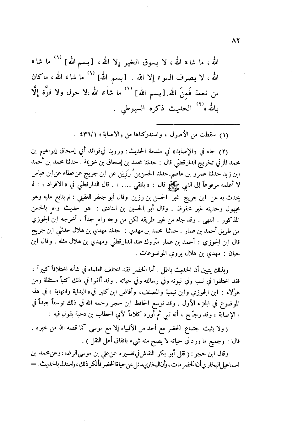 أَنَا أَفْصَحُ مَنْ نَطَقَ بِالضَّادِ // مَعْنَاهُ صَحِيحٌ وَلَكِنْ لَا أَصْلَ لَهُ فِي مَبْنَاهُ كَمَا قَالَهُ ابْنُ كَثِيرٍ