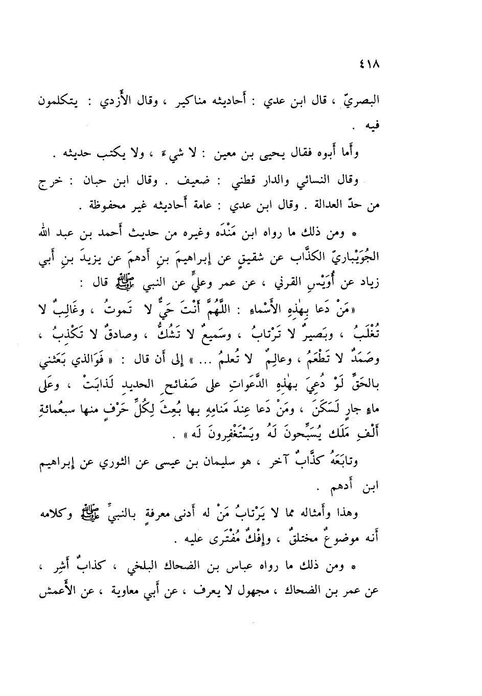 كتاب الأسرار المرفوعة في الأخبار الموضوعة