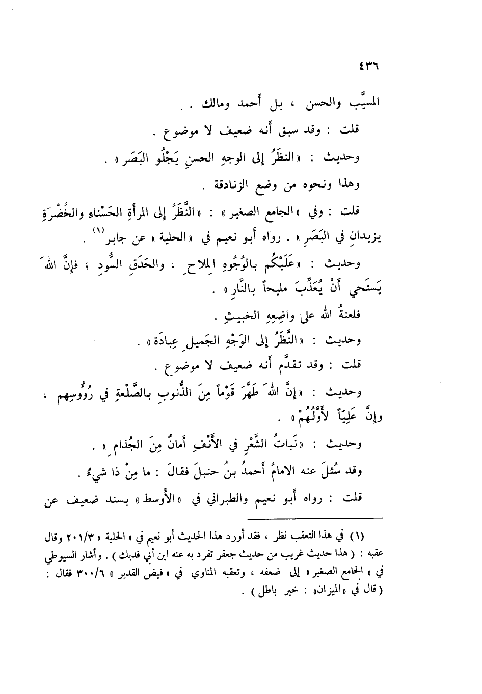 قُلْتُ هَذَا لَيْسَ بِمَوْضُوعٍ كَمَا قَالَ الْحَافِظُ الْعَسْقَلَانِيُّ بَلْ يَرْتَقِي إِلَى الْحَسَنِ وَلَهُ شَوَاهِدُ