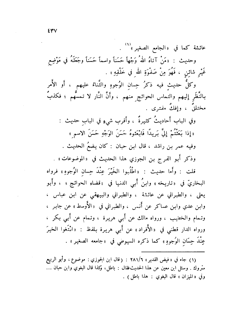 أَقُولُ وَالظَّاهِرُ أَنَّ الْحَدِيثَ ضَعِيفٌ لَا مَوْضُوعٌ وَقَدْ شَرَحْتُ مَعْنَاهُ فِي بَهْجَةِ الْإِنْسَانِ فِي مُهْجَةِ الْحَيَوَانِ