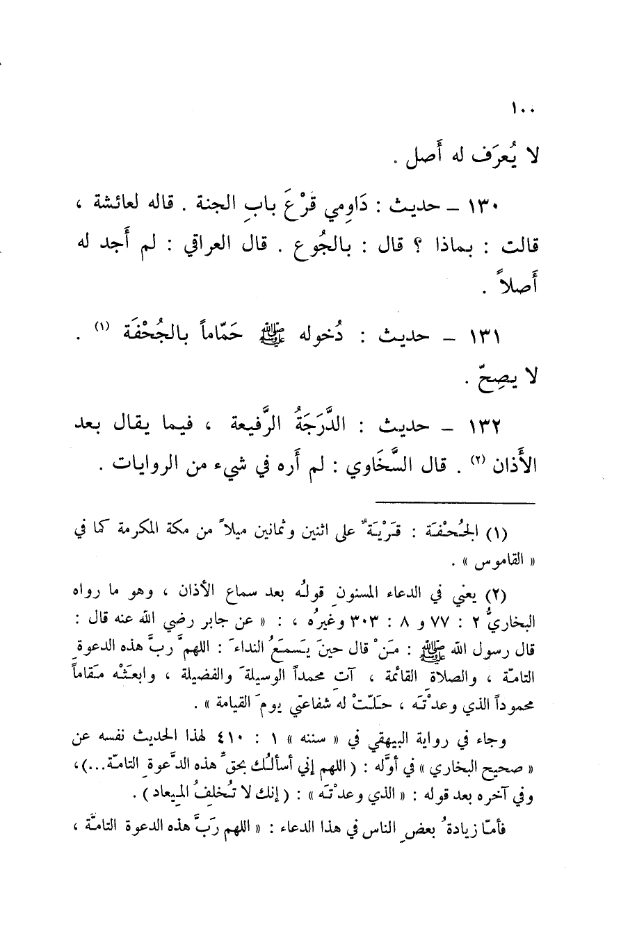 132 - حَدِيثُ الدَّرَجَةُ الرَّفِيعَةُ فِيمَا يُقَالُ بَعْدَ الأَذَانِ قَالَ السَّخَاوِيُّ لَمْ أَرَهُ فِي شَيْءٍ مِنَ الرِّوَايَاتِ