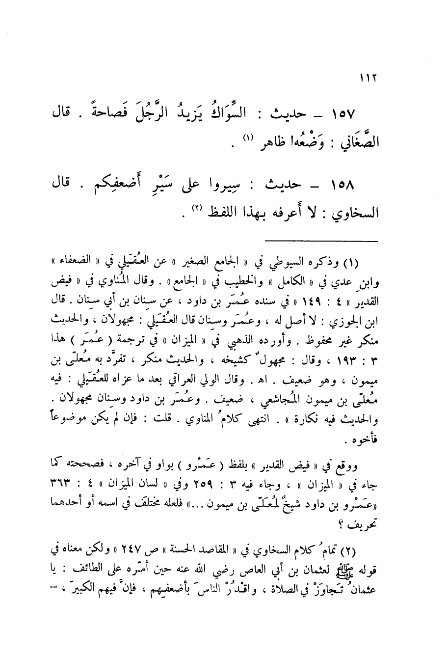 158 - حَدِيثُ سِيرُوا عَلَى سَيْرِ أَضْعَفِكُمْ قَالَ السَّخَاوِيُّ لَا أَعْرِفُهُ بِهَذَا اللَّفْظِ