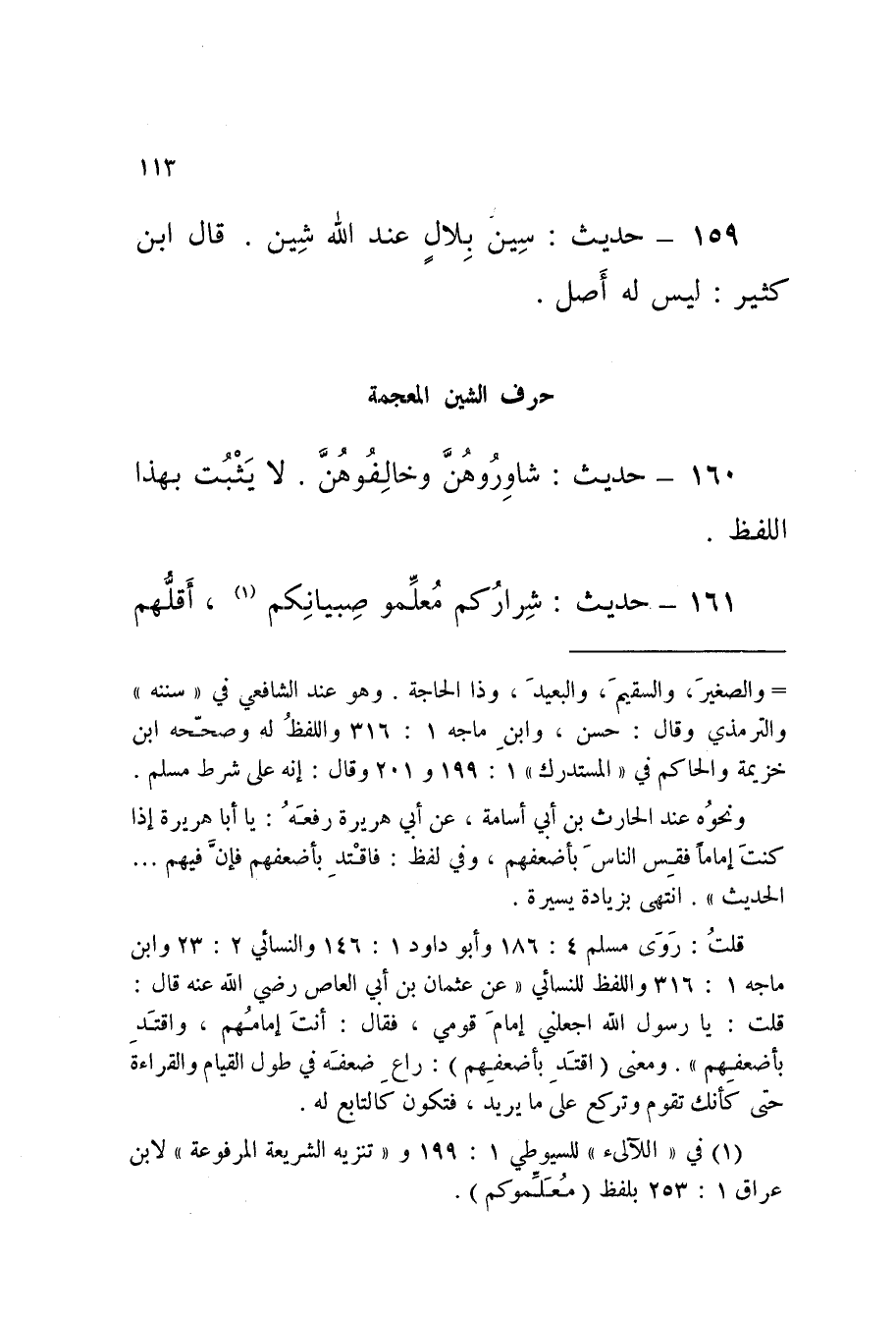 159 - حَدِيثُ سِينُ بِلالٍ عِنْدَ اللَّهِ شِينٌ قَالَ ابْنُ كَثِيرٍ لَيْسَ لَهُ أَصْلٌ