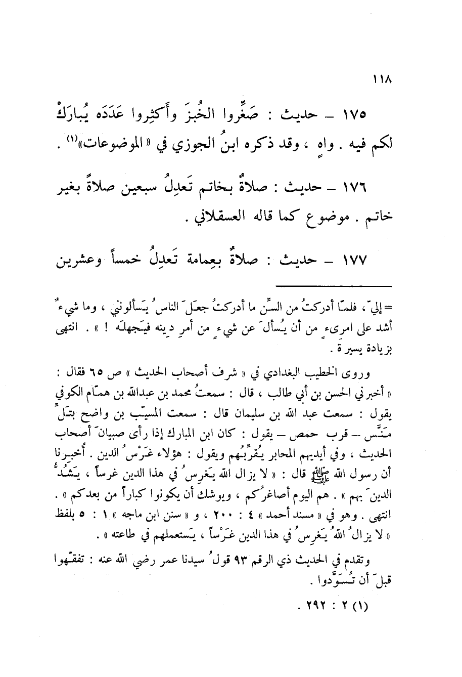 175 - حَدِيثُ صَغِّرُوا الْخُبْزَ وَأَكْثِرُوا عَدَدَهُ يُبَارَكُ لَكُمْ فِيهِ وَاهٍ وَقَدْ ذَكَرَهُ ابْنُ الْجَوْزِيِّ فِي الْمَوْضُوعَاتِ