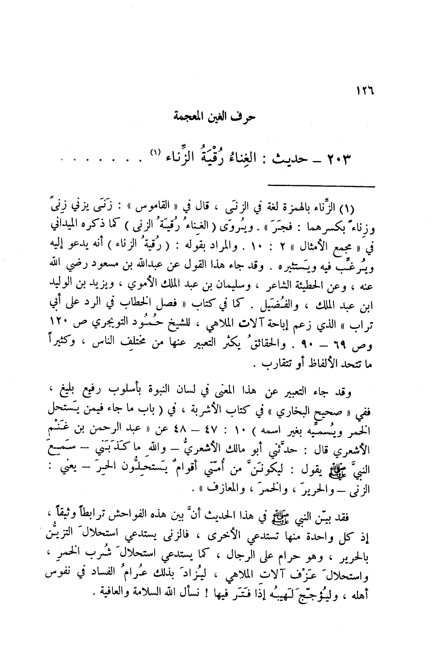 203 - حَدِيثُ الْغِنَاءُ رُقْيَةُ الزِّنَاءِ مِنْ كَلامِ الْفُضَيْلِ