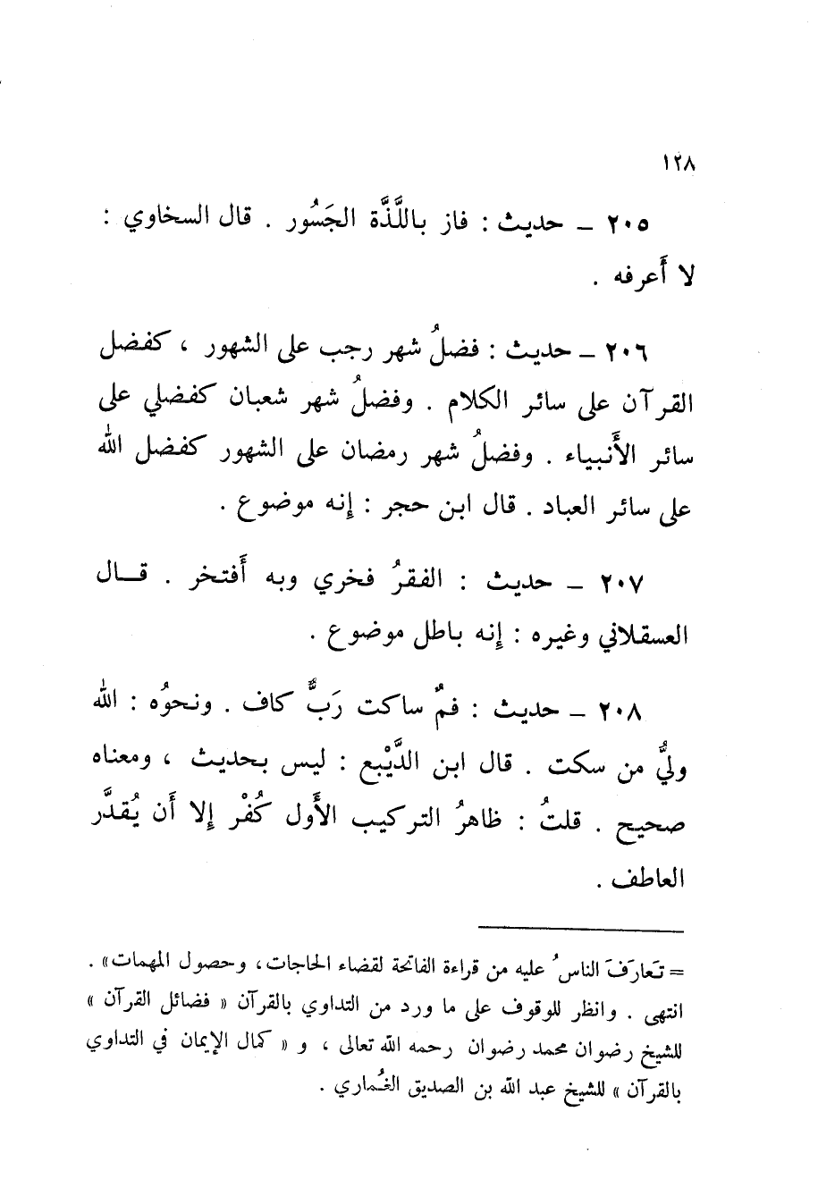 207 - حَدِيثُ الْفَقْرُ فَخْرِي وَبِهِ أَفْتَخِرُ قَالَ الْعَسْقَلانِيُّ وَغَيْرُهُ إِنَّهُ بَاطِلٌ مَوْضُوعٌ