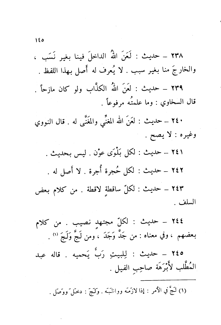 238 - حَدِيثُ لَعَنَ اللَّهُ الدَّاخِلَ فِينَا بِغَيْرِ نَسَبٍ وَالْخَارِجَ مِنَّا بِغَيْرِ سَبَبٍ لَا يُعْرَفُ لَهُ أَصْلٌ بِهَذَا اللَّفْظِ