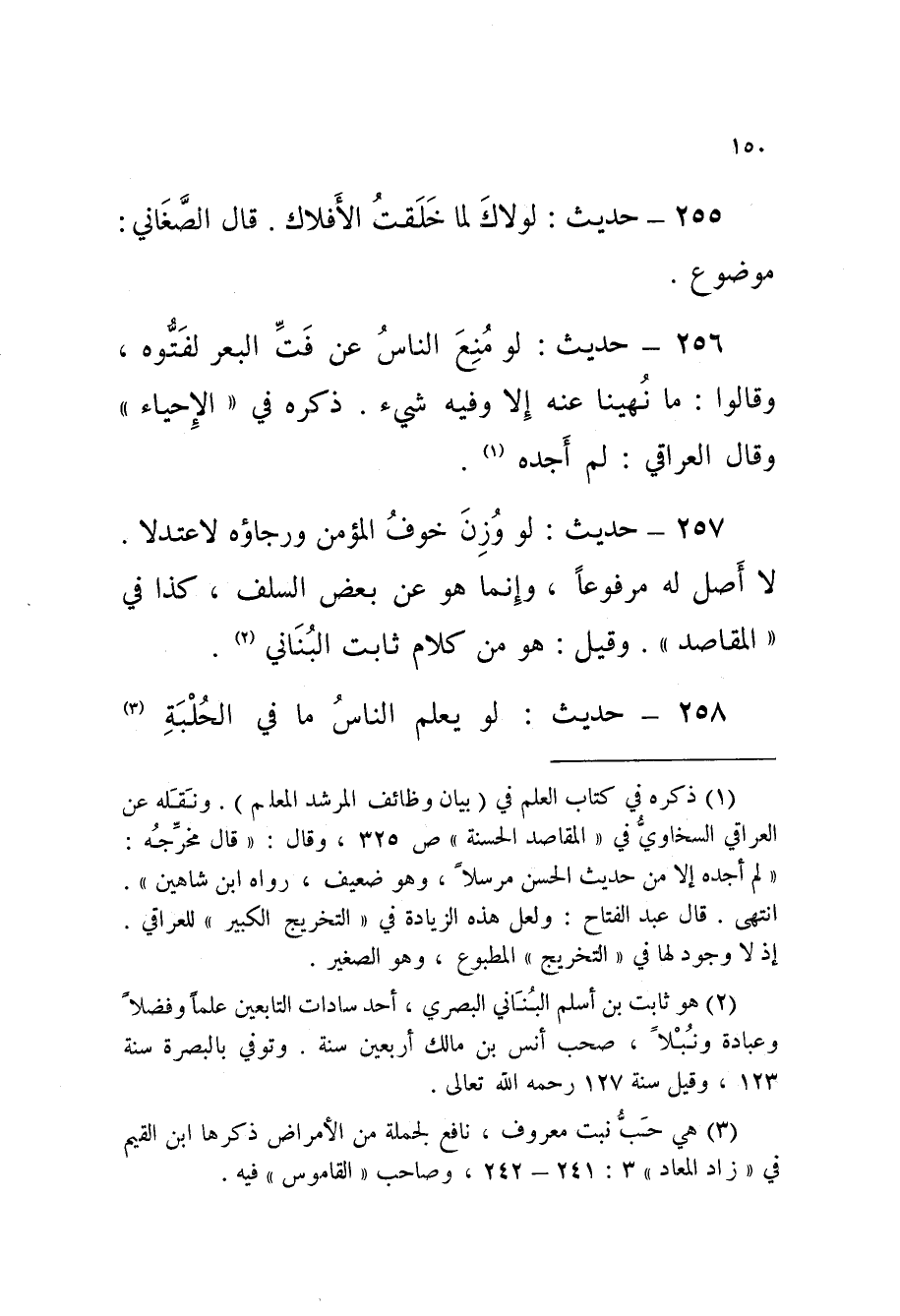 255 - لَوْلاكَ لَمَا خَلَقْتُ الأَفْلاكَ قَالَ الصَّغَانِيُّ مَوْضُوعٌ