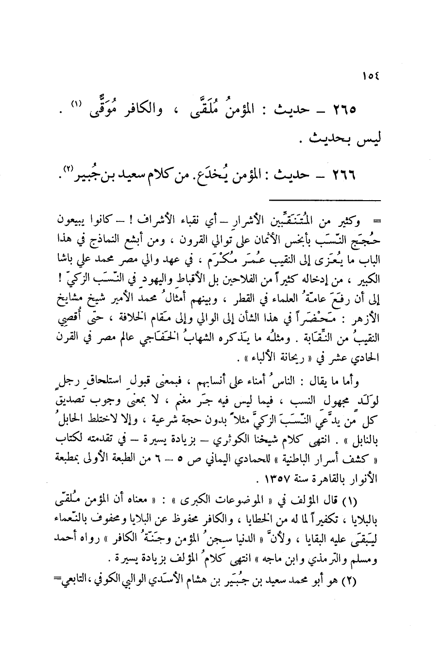 266 - حَدِيثُ الْمُؤْمِنُ يُخْدَعُ مِنْ كَلامِ سَعِيدِ بْنِ جُبَير