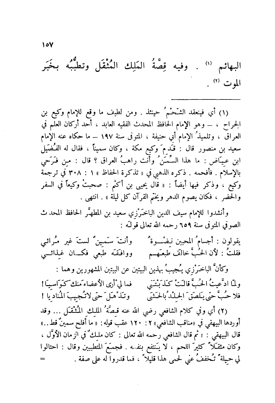 الْبَهَائِمِ وَفِيهِ قِصَّةُ الْمَلِكِ الْمُثْقَلِ وَتَطَبُّبُهُ بِخَبَرِ الْمَوْت